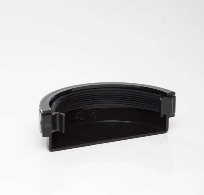 112mm Polypipe Half Round Gutter External Stop End Black
