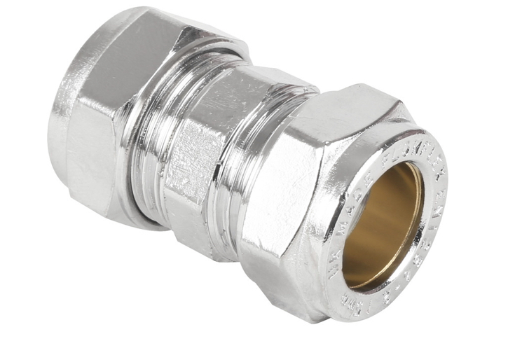 Compression Straight Coupler Chrome Plated 15mm