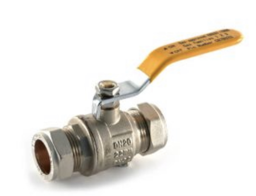Gas Ball Valve – 15mm Compression Yellow Lever Handle